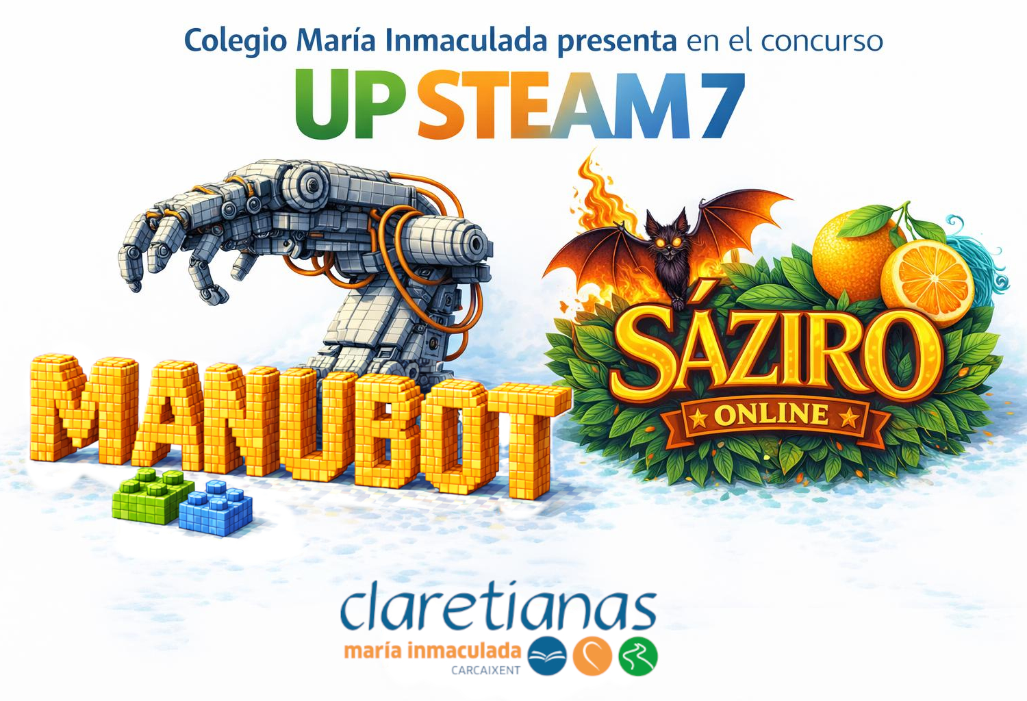 Concurso UP!STEAM 7 El alumnado de 3º ESO, en la materia de Tecnología y Digitalización, y de 4º ESO, en Digitalización, han desarrollado distintos proyectos para participar en el concurso UP!STEAM7, organizado por la Universidad Politécnica de Valencia. 3º ESO - TechnoMakers ha creado un prototipo de mano robótica con LEGO, llamado MANUBOT. 4º